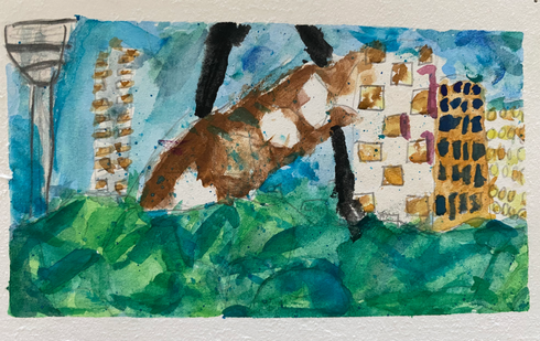 Students studied the topic of art and illusion, giving consideration to consideration social and historical ways of seeing. The water colour of a cityscape demonstrates students representation of distance on a 2D surface. The popular illustrations by Thomas Lamadieu inspired students aerial perspective drawings.